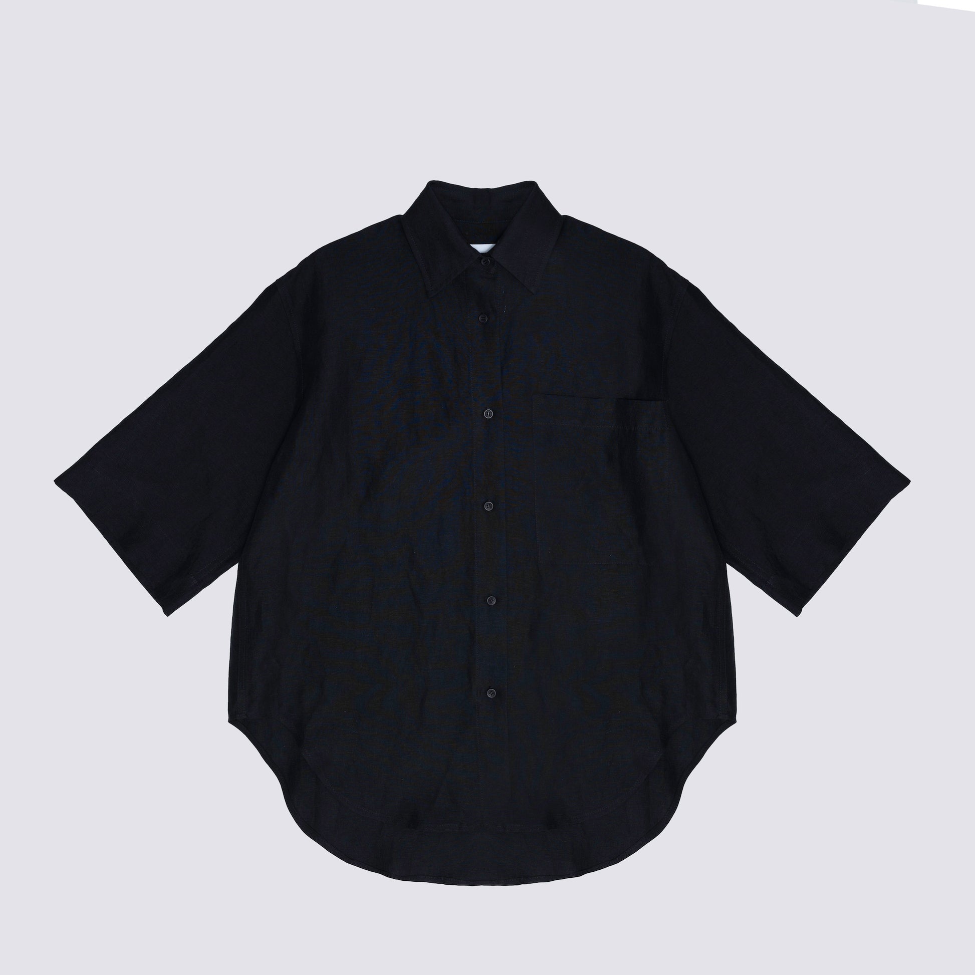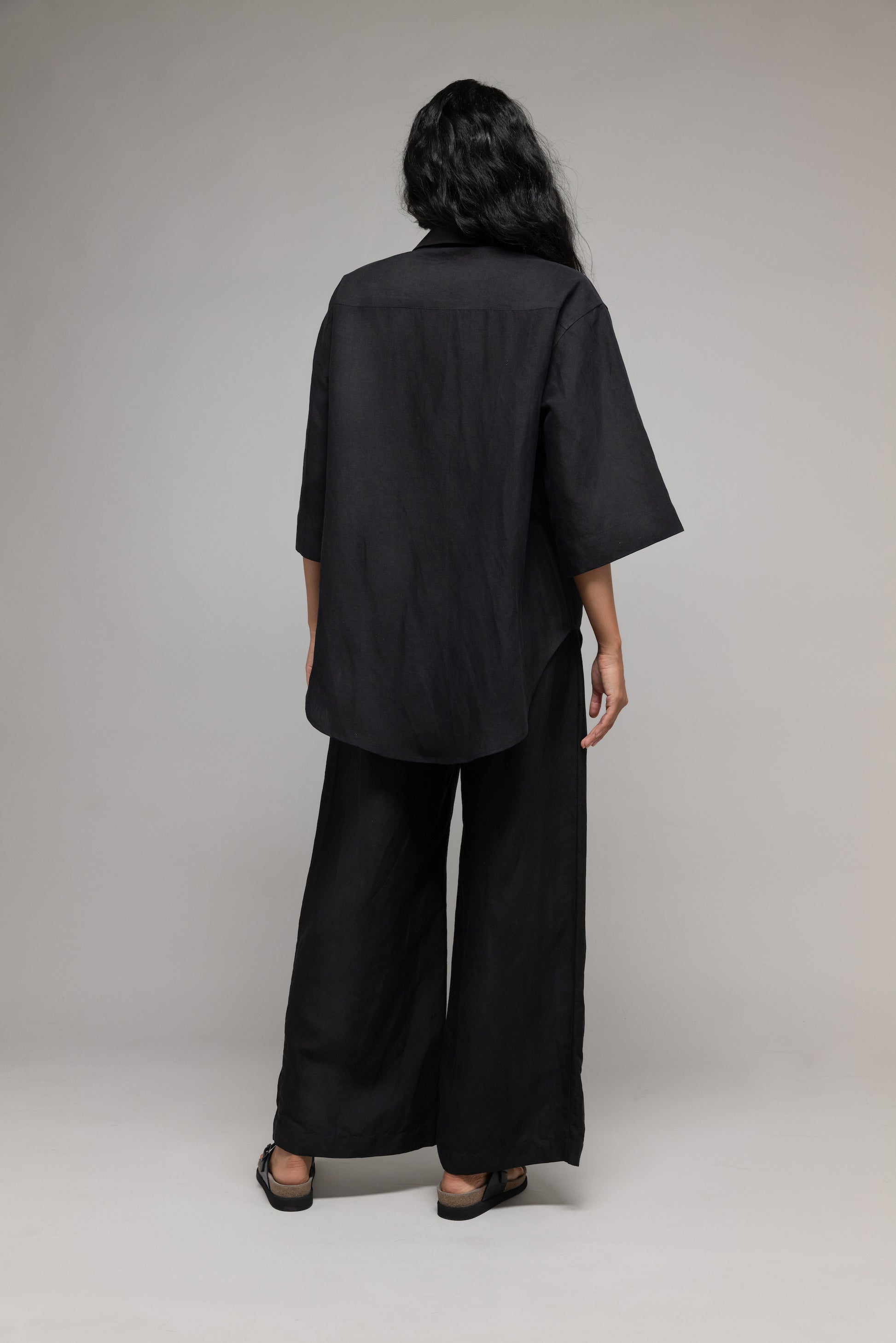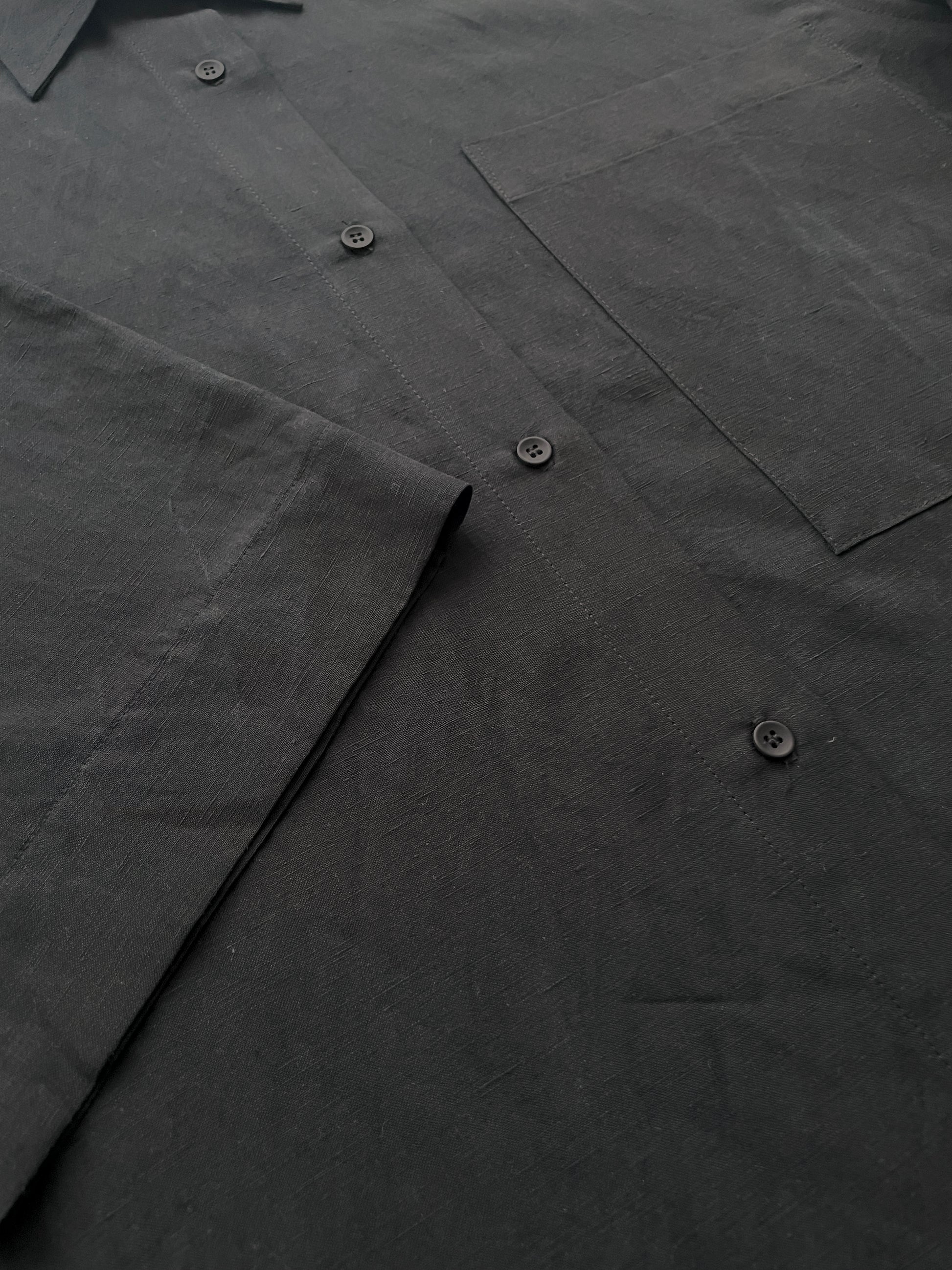 Button up shirt cut from an airy silk linen blend. Oversized fit and patch pocket to match. Pair with the matching Deep Pleat Trouser .